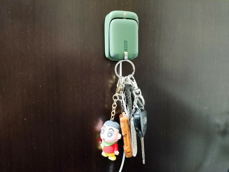 TAU行動電源的磁力相當足夠,即使掛了一整串鑰匙也都相當穩固沒有問題