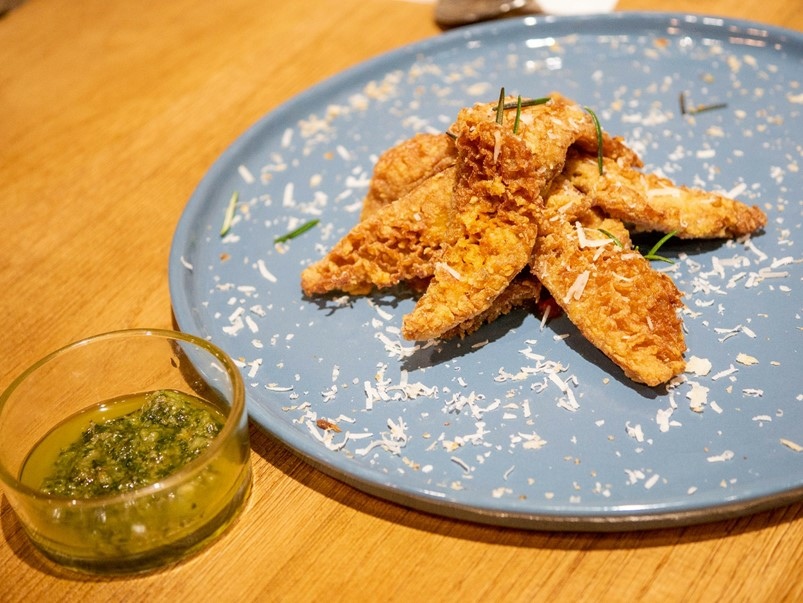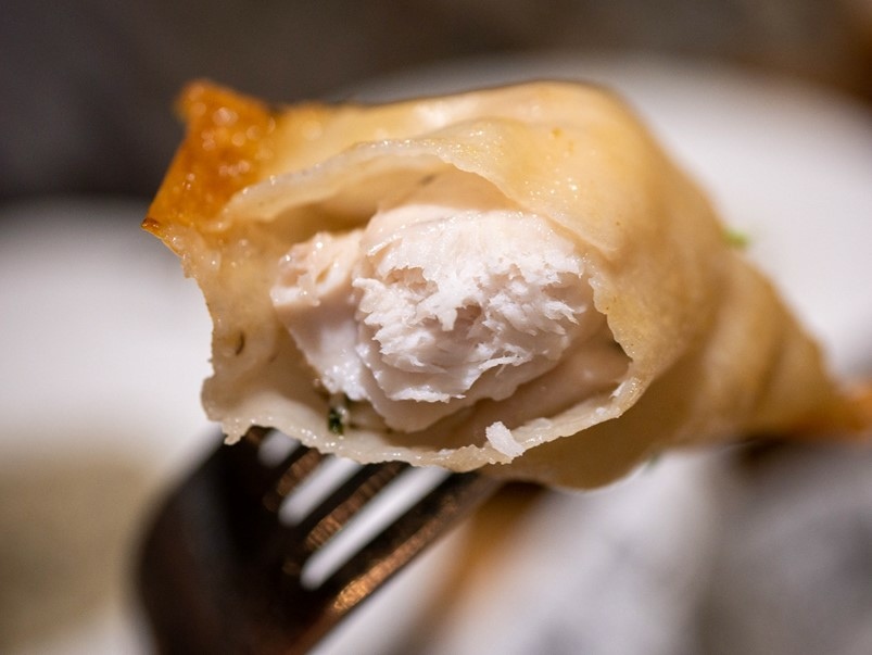 WOW經典檸檬虱目魚酥捲,用類似餃子皮包覆魚肉,炸過之後外皮酥脆,肉汁也鎖在裡面