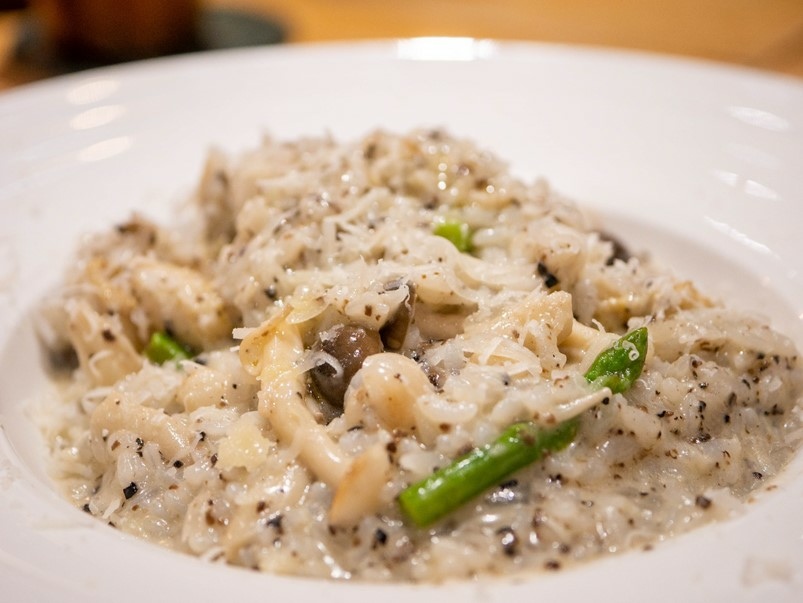 松露醬蘆筍野蕈肌肉燉飯,超好吃!激推!松露味道香氣濃郁,燉飯滑順鹹香,搭配蘆筍清脆爽口,非常好吃!