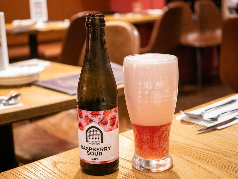 英國VC覆盆莓酸啤酒,沒有啤酒花的苦味,覆盆子香氣濃郁,並且帶有梅果淡淡的酸甜,冰涼酸爽好喝!