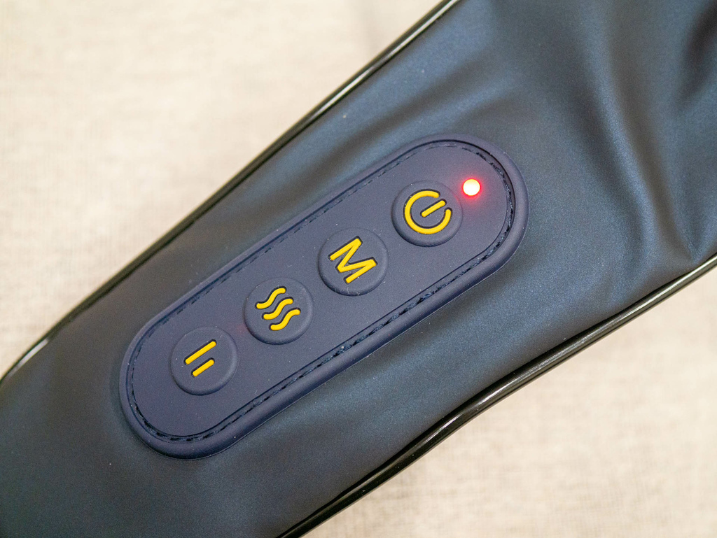 按摩帶的操作按鈕位於左側,可以調整溫度、速度,來滿足不同的按摩需求